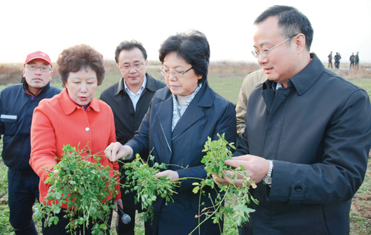 3日下午,李斌一行首先來(lái)到位于五河縣朱頂鎮(zhèn)的全國(guó)最大的紫花苜蓿生產(chǎn)基地——秋實(shí)草業(yè)有限公司調(diào)研。在市委書記周春雨、代市長(zhǎng)白金明的陪同下,李斌深入田間察看牧草長(zhǎng)勢(shì),當(dāng)她得知牧草品質(zhì)上乘,草場(chǎng)機(jī)械化作業(yè)達(dá)到世界先進(jìn)水平時(shí),不住地點(diǎn)頭稱贊。調(diào)研中,李斌和在這里打工的女拖拉機(jī)手、朱頂鎮(zhèn)小柳村村民劉小紅拉起家常,希望她通過自己的努力過上更加幸福美好的生活。